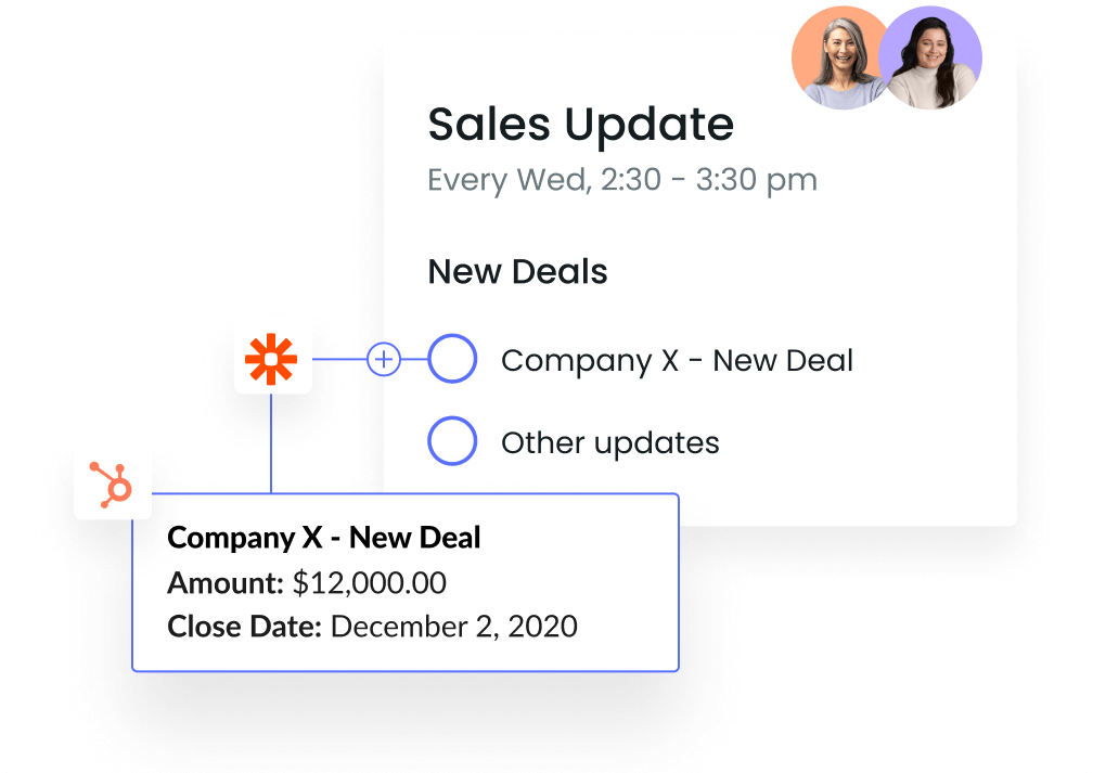 如果你的工作是分散在不同的工具,但您的会议议程住在的家伙,我们Zapier集成来帮助保持同步。