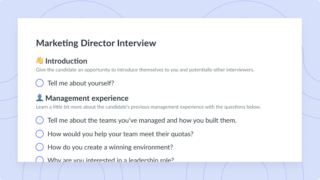 营销经理在帮助推动增长方面发挥着重要作用。使用这个模板来深入了解候选人的背景和专业知识!